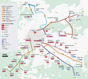 Les trois lignes ouvertes en mars 2026 ciblent des axes identifiés entre l’Ain et la Métropole lyonnaise. La ligne 5 Reyrieux et Trévoux à la gare de Saint-Germain-au-Mont-d’Or répond aux enjeux de congestion routière et de stationnement à proximité immédiate de la gare, en anticipation du futur parc-relais. La ligne 6 relie le secteur de Trévoux au nord-est de la métropole, avec une correspondance avec la ligne A du métro à Laurent Bonnevay, à destination des actifs effectuant des déplacements quotidiens vers les pôles d’emplois métropolitains. La ligne 7, déployée le long de l’axe de l’A42, s’appuie sur la voie réservée au covoiturage dont cet axe est déjà doté, constituant ainsi un service complémentaire au train pour les habitants de l’Ain. Elle dessert Montluel, Saint-Maurice-de-Beynost, Pusignan et Meyzieu jusqu’à Villeurbanne, avec des correspondances vers le tramway T3 à Meyzieu ZI ainsi que les zones d’activités de Pusignan et Meyzieu.